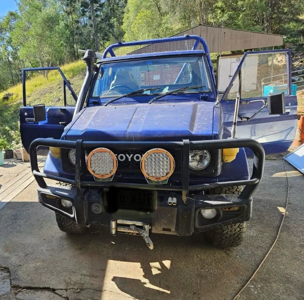 Landcruiser Ute – HJ75 – 12000kg remote winch, LED spotlights, air bags on rear, solid large steel tray. Very little rust – still used daily. Will be sold with no rego. 2h motor, non turbo, does not blow smoke. Motor and gearbox – 400000. New heavy duty clutch, new radiator, new alternator & updated radio