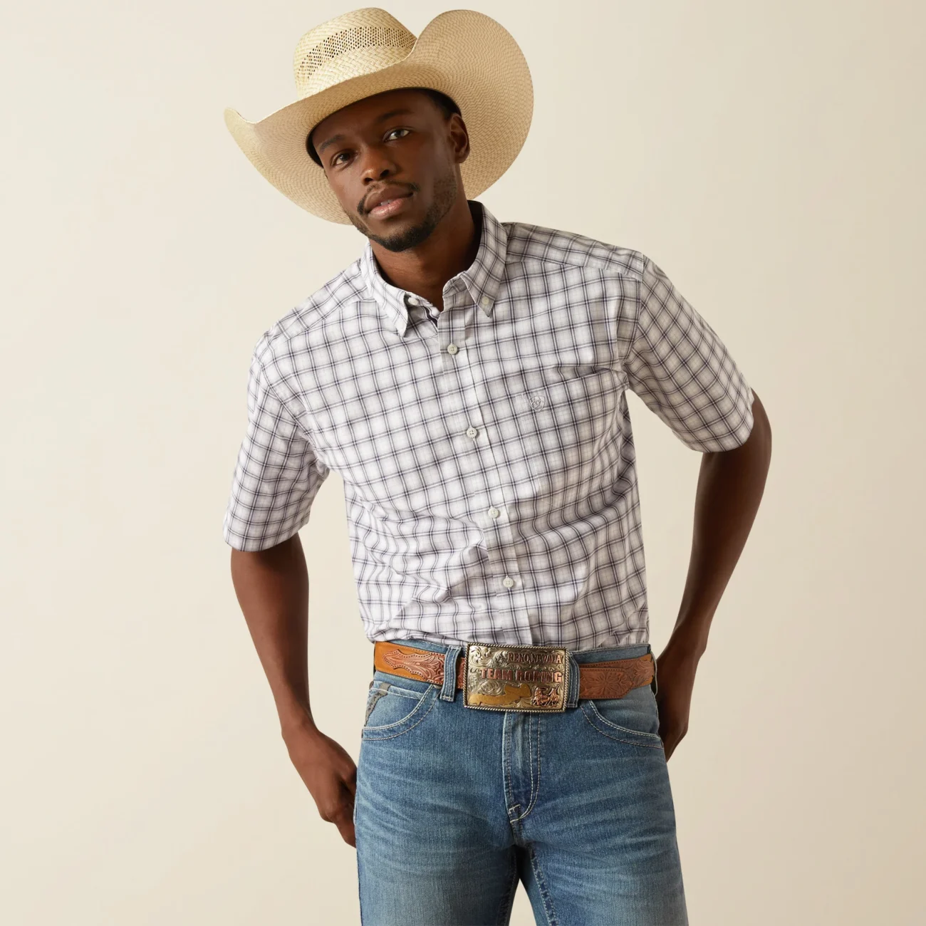 Navy and White Plaid Wesly Short Sleeve Classic Fit Button Down Shirt.