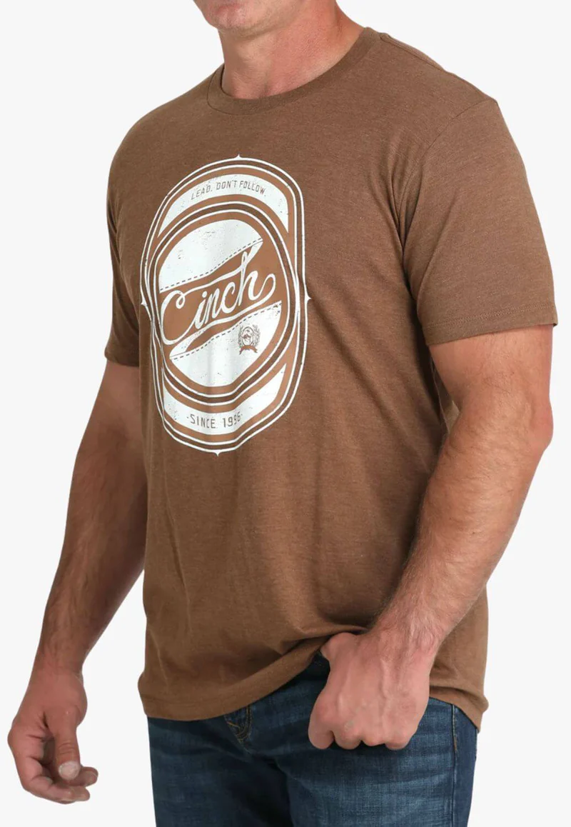 Men’s Cinch Tee in brown is made from a super soft poly cotton blend with 60% Cotton and 40% Polyester.