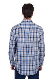 Hard Slog Mens Gibson Half Placket Long Sleeve Shirt – Blue/Tan.