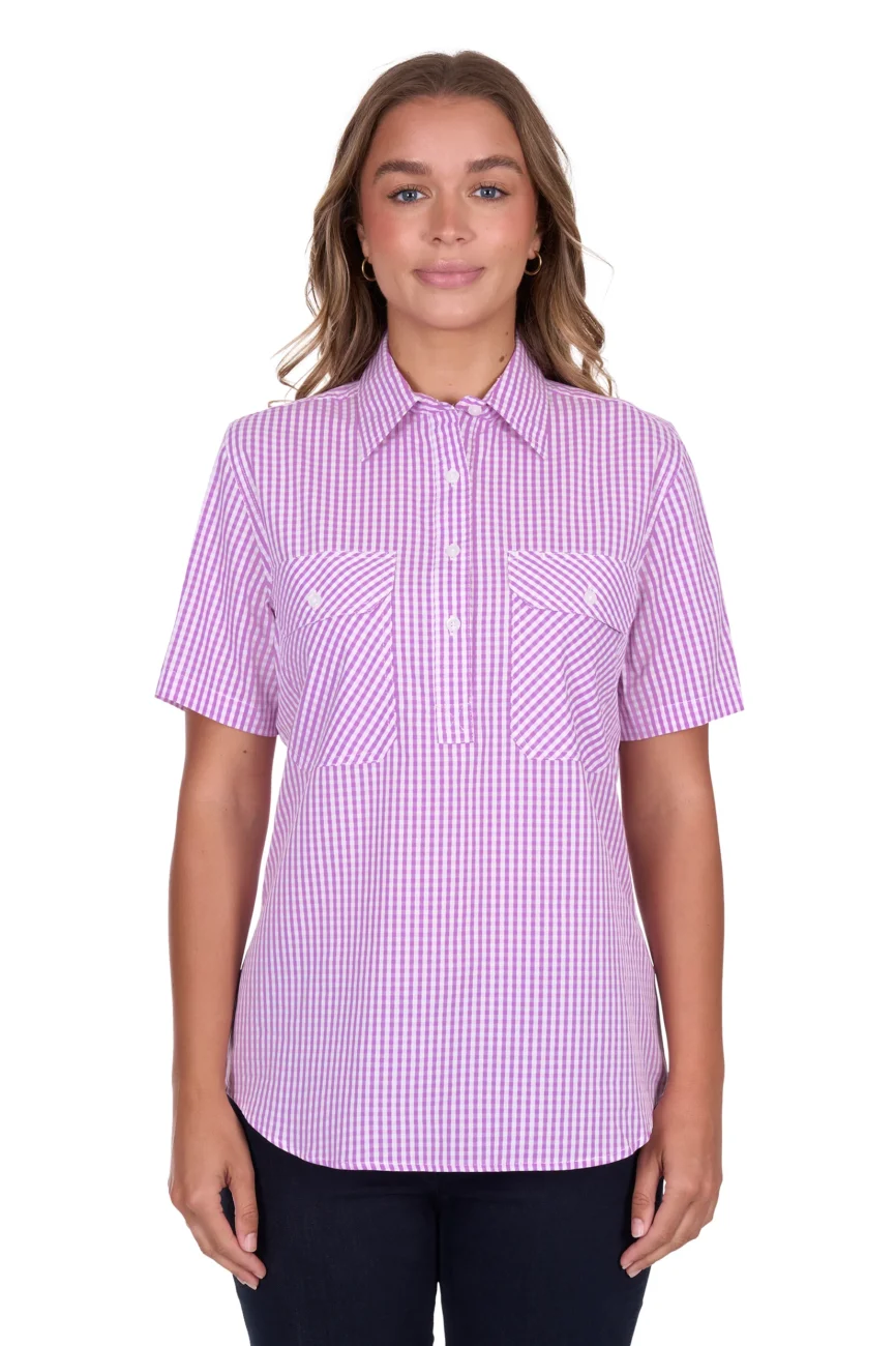 Half placket 2-pocket short sleeve shirt, one with pen holder, logo buttons